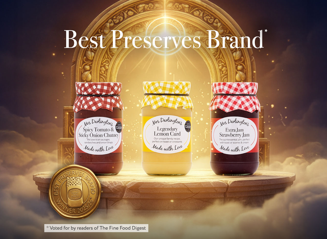 “Mrs Darlington's extensive range today includes over 85 traditional jams, curds, marmalades, chutneys, pickles, condiments & sauces.”